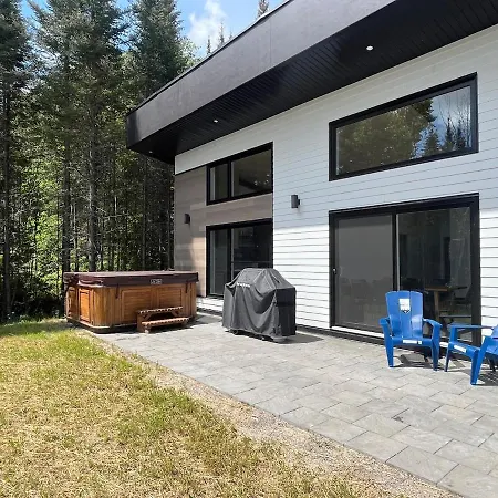 Chalet A Louer Au Bord D'Un Lac Avec Spa La Baie oferuje gościom relaksujące doświadczenie z jacuzzi.